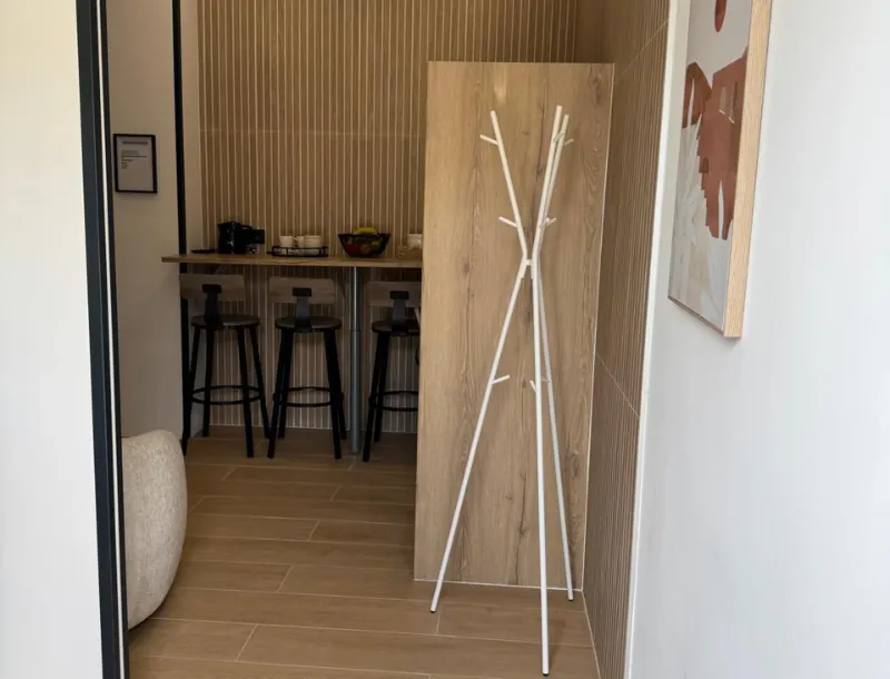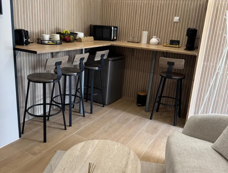 Après une séance de spa ou de sauna, installez-vous confortablement dans le coin salon, un espace convivial où l’ambiance cosy et élégante invite à la relaxation. Laissez-vous ensuite envelopper par la sérénité de l’espace de repos, conçu pour prolonger ce moment de bien-être et savourer pleinement chaque instant.